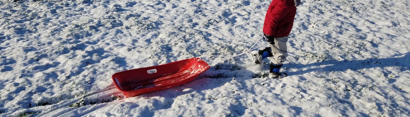 The first of many is the “sticking together” and “not running off” rule. This equated to them chasing each other down the hill as they took turns pushing each other on the sled.